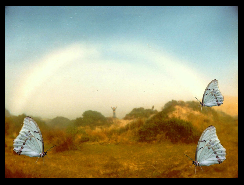 This is a true picture of a white rainbow with Christopher my son. He could have been helping the butterflies in the picture.